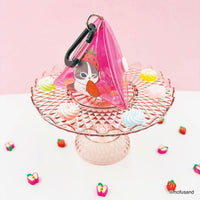 ちょこんと手のひらサイズなクリア素材の三角形ポーチ♪ お菓子やアクセサリーなど細々したものが入ります。バッグやスマホショルダーにつけても◎