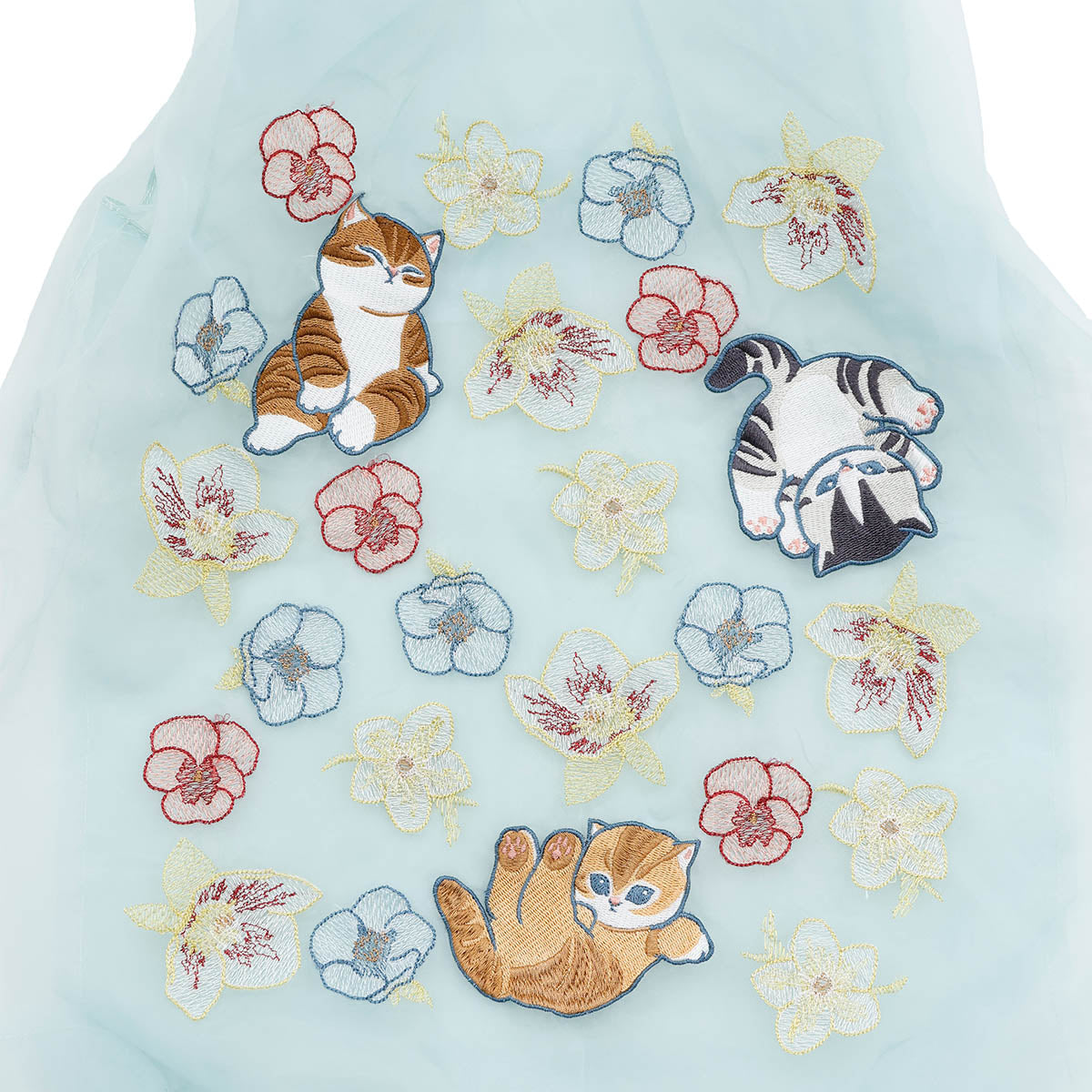 A tulle bag with a calm atmosphere where flowers and cats harmonize.