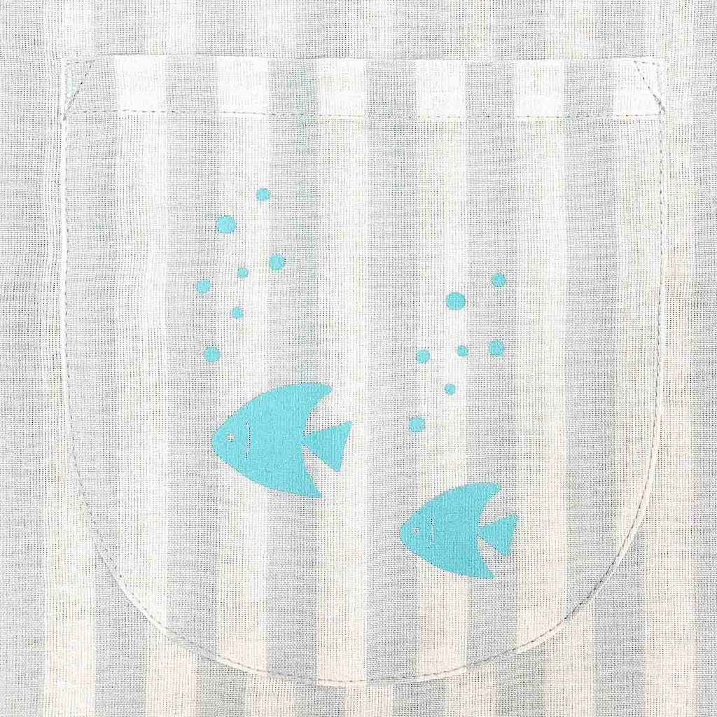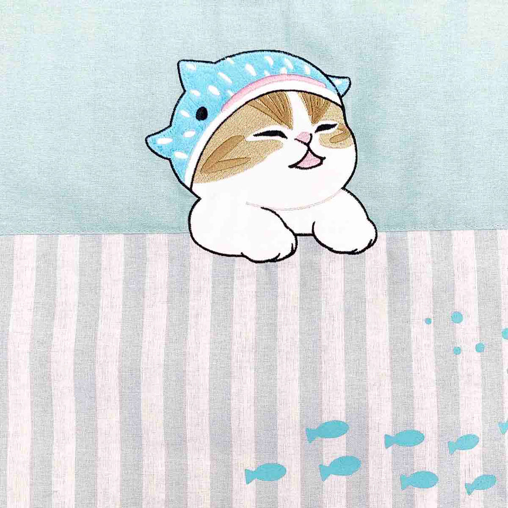 The extremely joyful expression of Shark Meow is cute! The fish print is also on point!