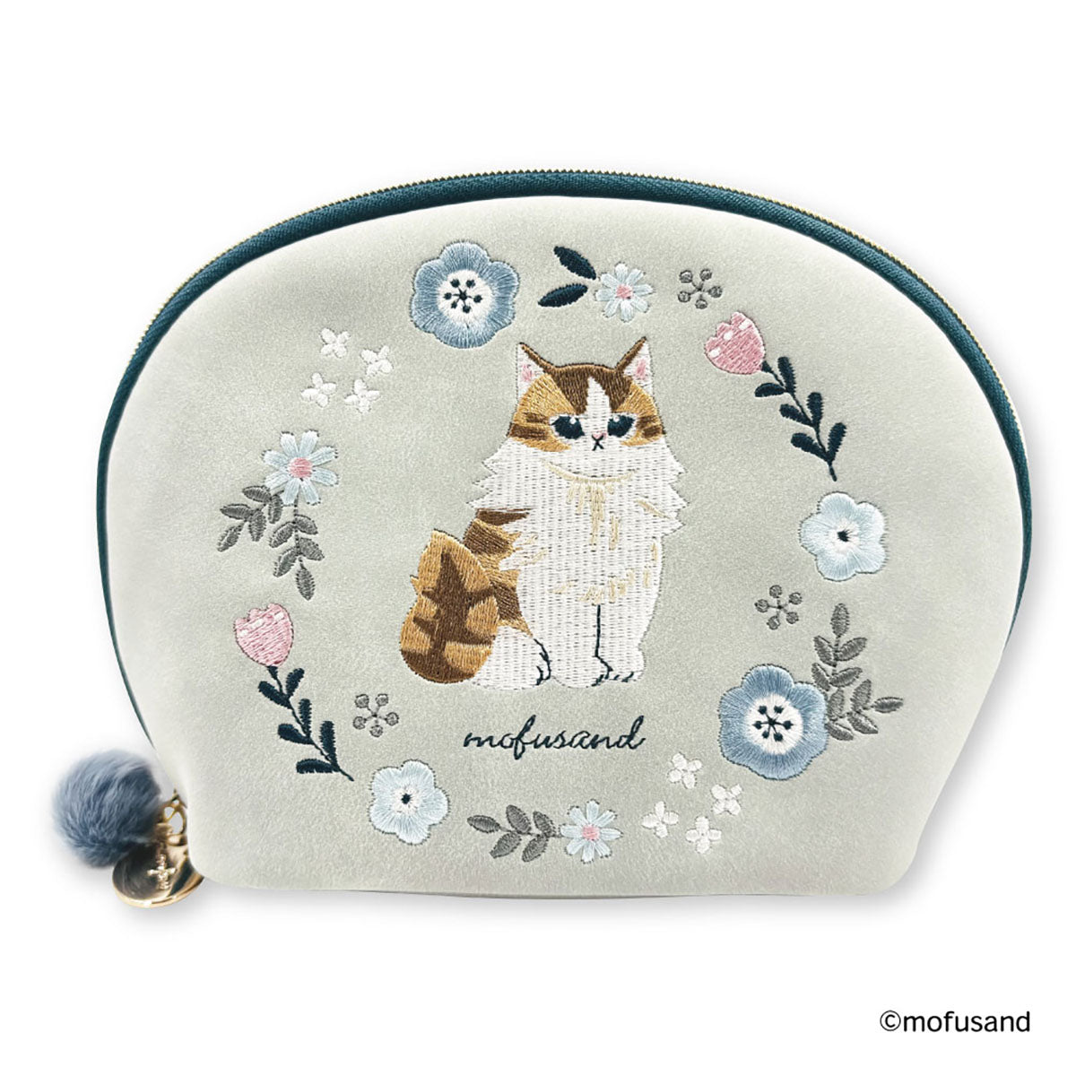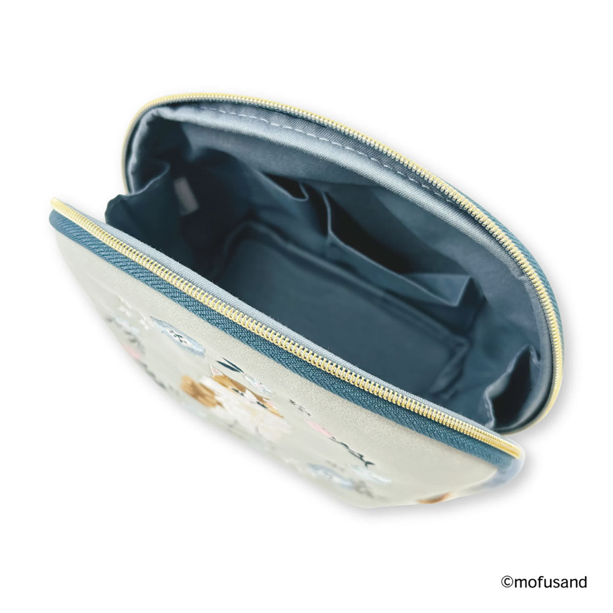- mofusand 라운드 파우치 보타니컬 (블루 · 롱헤어냥)
