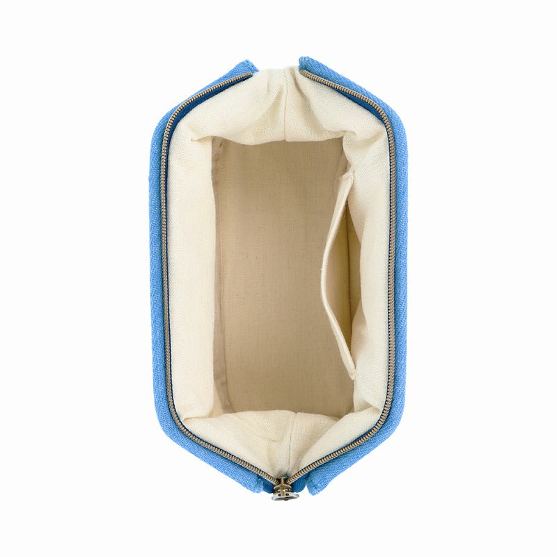 切り返しのデザインとレトロなテイストがかわいいデニムポーチ。