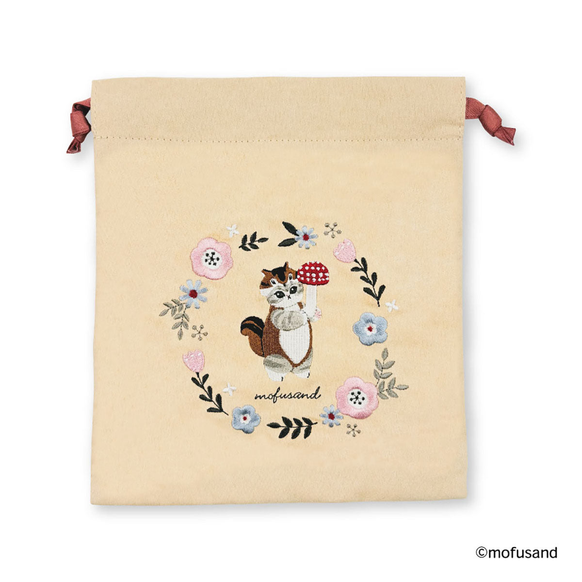 mofusand 巾着 ボタニカル(ベージュ・りすにゃん)
