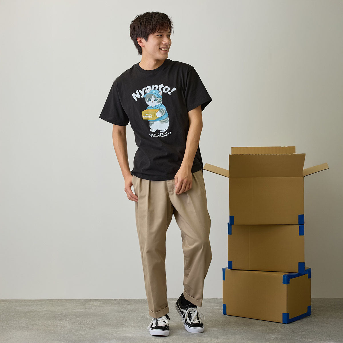 mofusand 喵托!搬家服務 T恤 Nyanto! 黑色